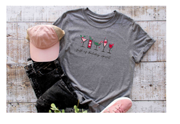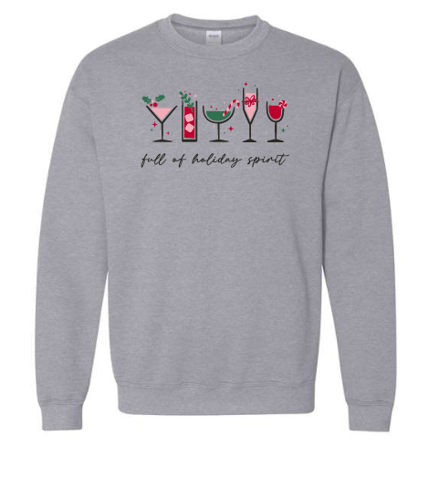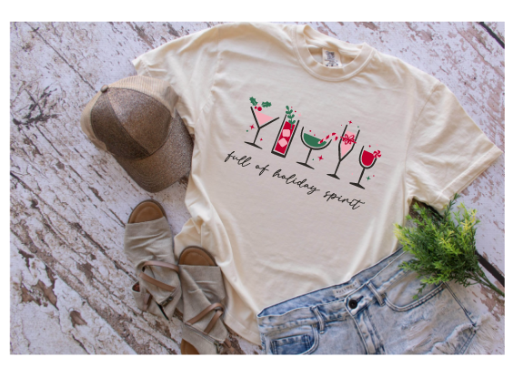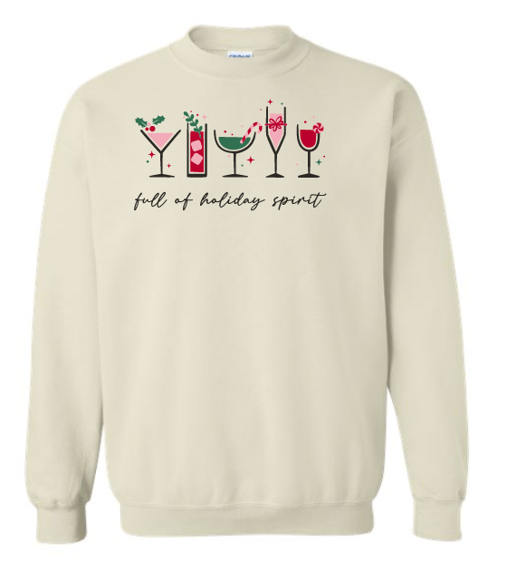 Cheers to the season! 🍸 Our “Full of Holiday Spirit” design — complete with festive drink illustrations — is the perfect blend of cozy and fun. Whether you’re sipping eggnog, cocktails, or cocoa, this tee or sweatshirt will keep you in the holiday mood all season long.