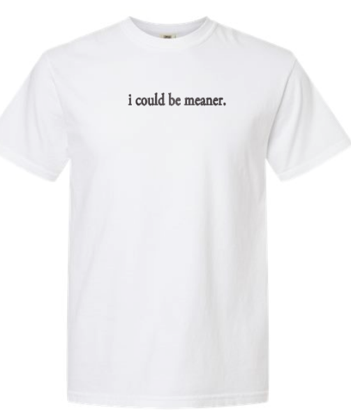 This Comfort Colors® short sleeve t-shirt features the phrase “i could be meaner.” Printed in a clean, minimalist style. Made with ultra-soft, garment-dyed cotton, this tee has a relaxed fit and that perfectly worn-in feel you love.