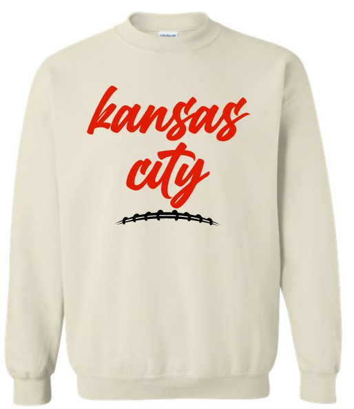 Design: Bold Kansas City script with football lace detailing — perfect for true fans.