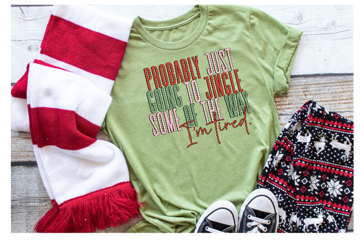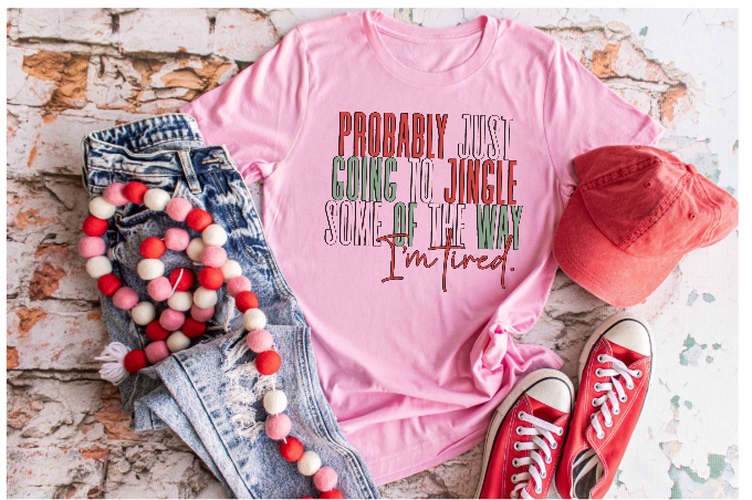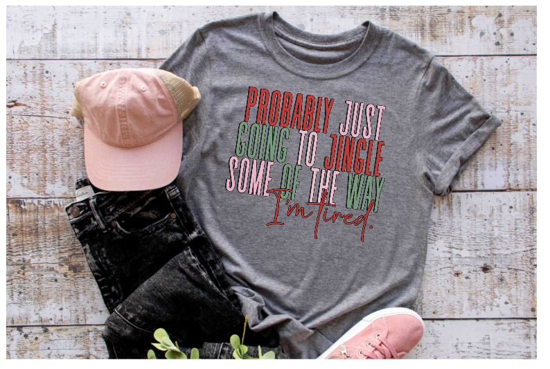 Bring some holiday humor to your wardrobe with our “I’ll Probably Just Jingle Half the Way” design — perfect for those who love Christmas but also love a good nap.