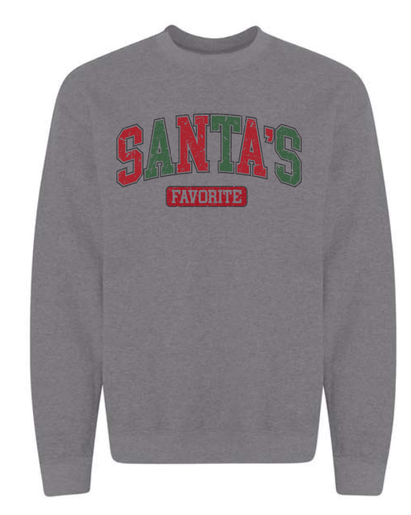 Design: Bold collegiate-style lettering that proudly declares you as Santa’s Favorite.